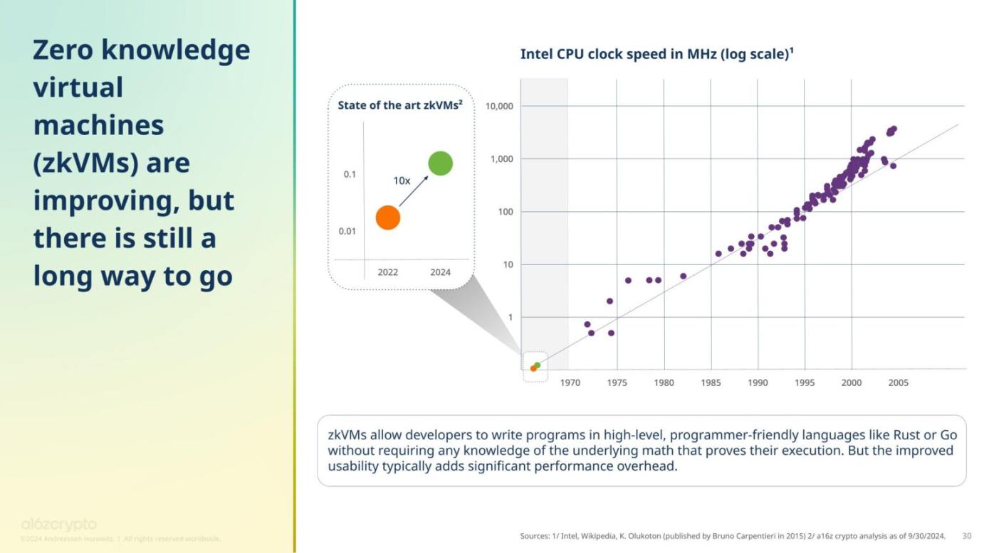 ZK 技术前景广阔,为开发者开启了廉价、可验证的区块链计算新路径。但基于 ZK 的虚拟机在性能上追赶传统计算机仍有长路要走。