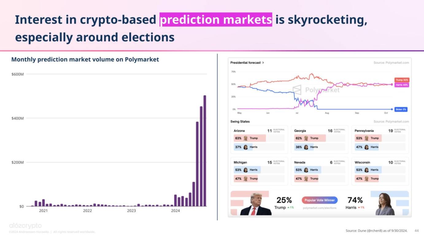 随着 11 月大选临近,基于加密货币的预测市场热度上升(尽管在美国非法),预测市场整体势头增强。已在美国商品期货交易委员会注册的非加密货币预测市场 Kalshi,近期在关于选举合约的诉讼中获胜。
