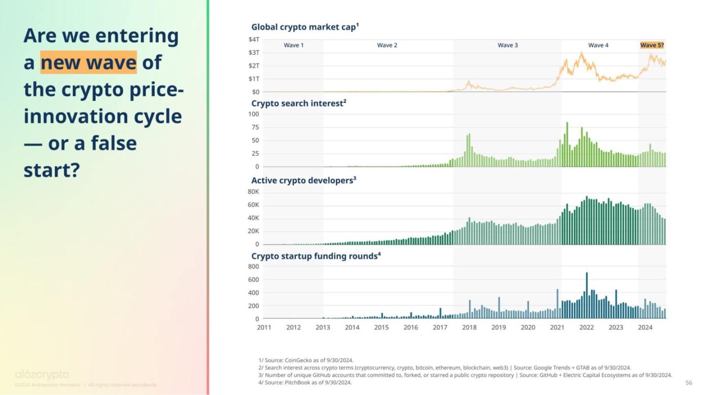 美国最知名的加密投资机构 A16z 两年前发布首份年度《加密货币现状报告》时,当时的世界截然不同。加密货币并非政策制定者的优先议题;比特币和以太坊交易产品尚未获得美国证券交易委员会批准;以太坊也还未转向节能的权益证明机制。旨在提升容量、降低交易成本的 L2 网络当时大多处于沉寂状态,且其上发生的交易成本远高于今日。