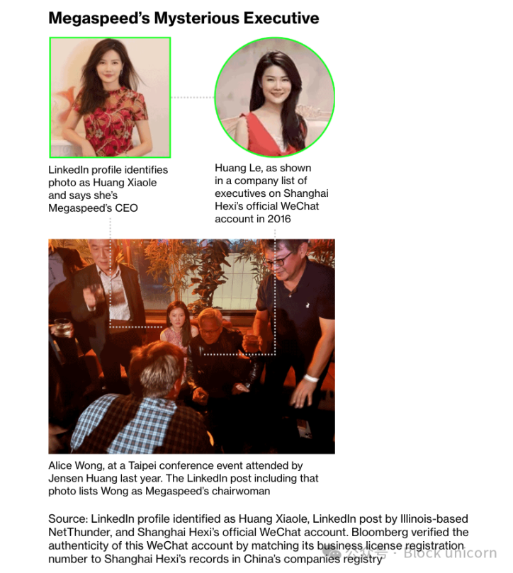 随着彭博社深入调查,事情变得更加离奇,其中包括一位姓」黄「的女子,她可能是 Megaspeed 和一家名为」上海和曦「的关联公司的首席执行官,而」上海和曦「也属于长江三角洲项目……她还被拍到在 2024 年台北的一次活动中坐在黄仁勋旁边。