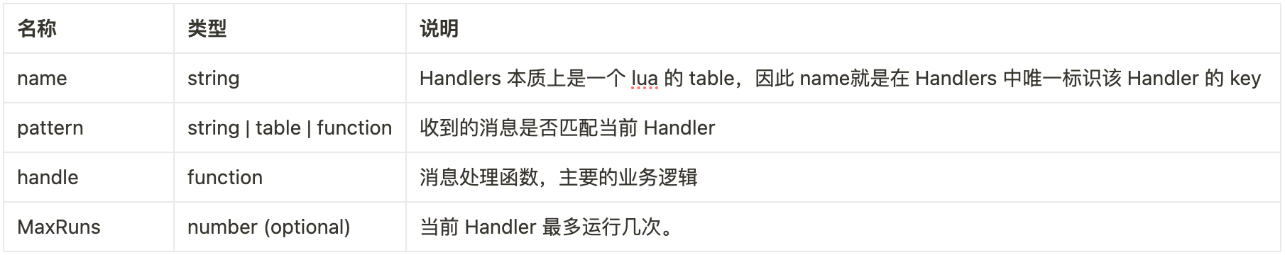 3. 之前在 Receive(pattern) 这一部分讲到的 Handlers.once(),其实就是内置的一个函数,把 MaxRuns设置为 1 的 Handlers.add(...)。