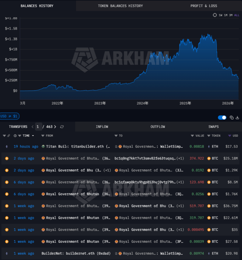 甚至于连不丹皇家政府也在卖币,这个喜马拉雅小国从 2019 年起用廉价水电低成本挖矿,2026 年 Q1 累计出售约 1.2 亿美元,持仓从峰值约 13,000 枚压缩至约 4,452 枚,缩水约六成。