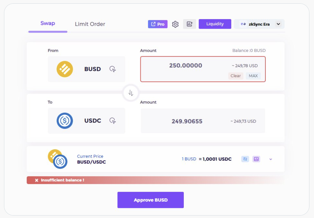 9、在 @veSyncL2 上将一些 usd+ 换成 busd。