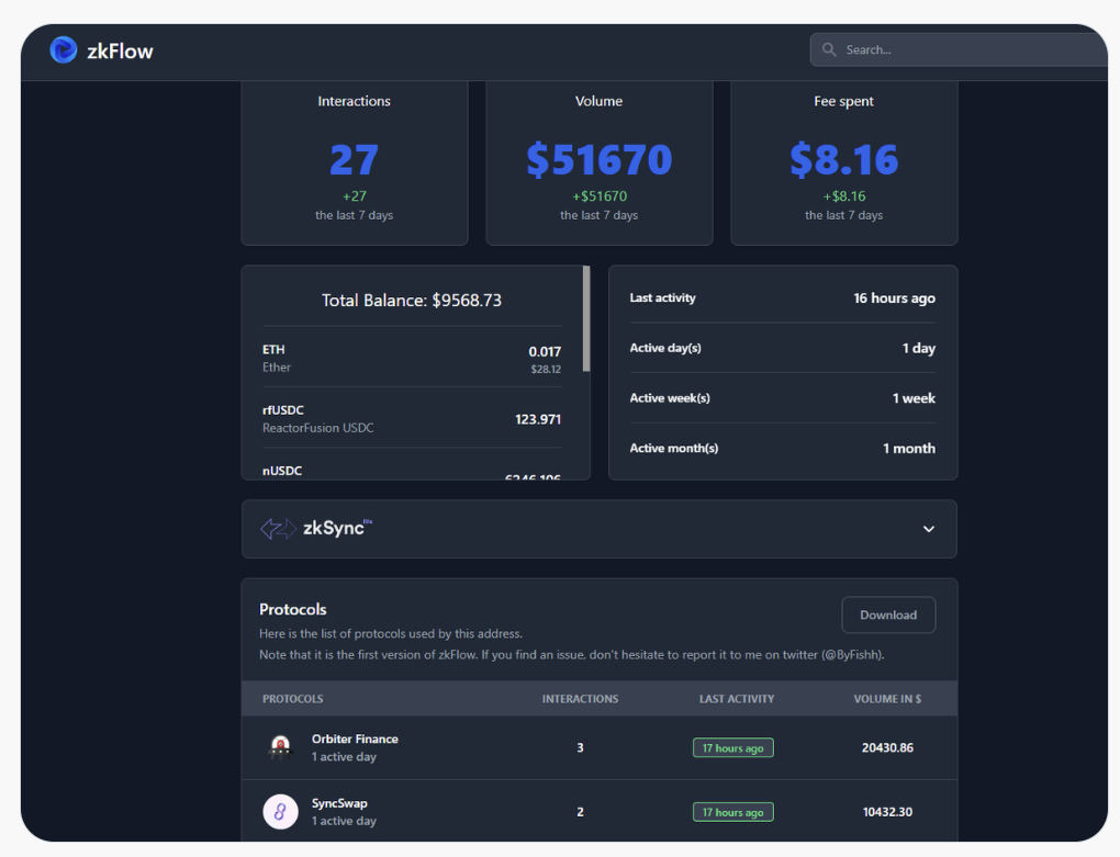 完成这些或其他步骤后,您可以使用以下工具检查您的活动(支付的燃气费用、交易量、交易数量、协议交互):