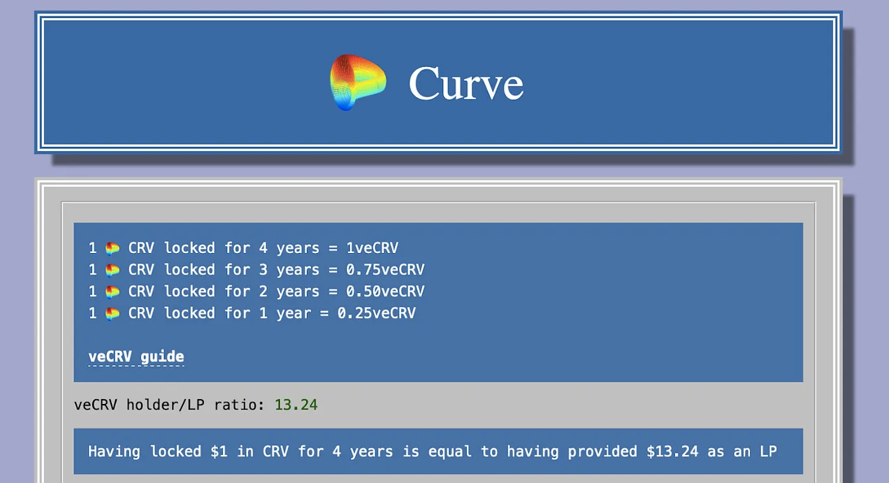 - 你锁定的时间越长,你获得的托管CRV(veCRV)的票数就越多;