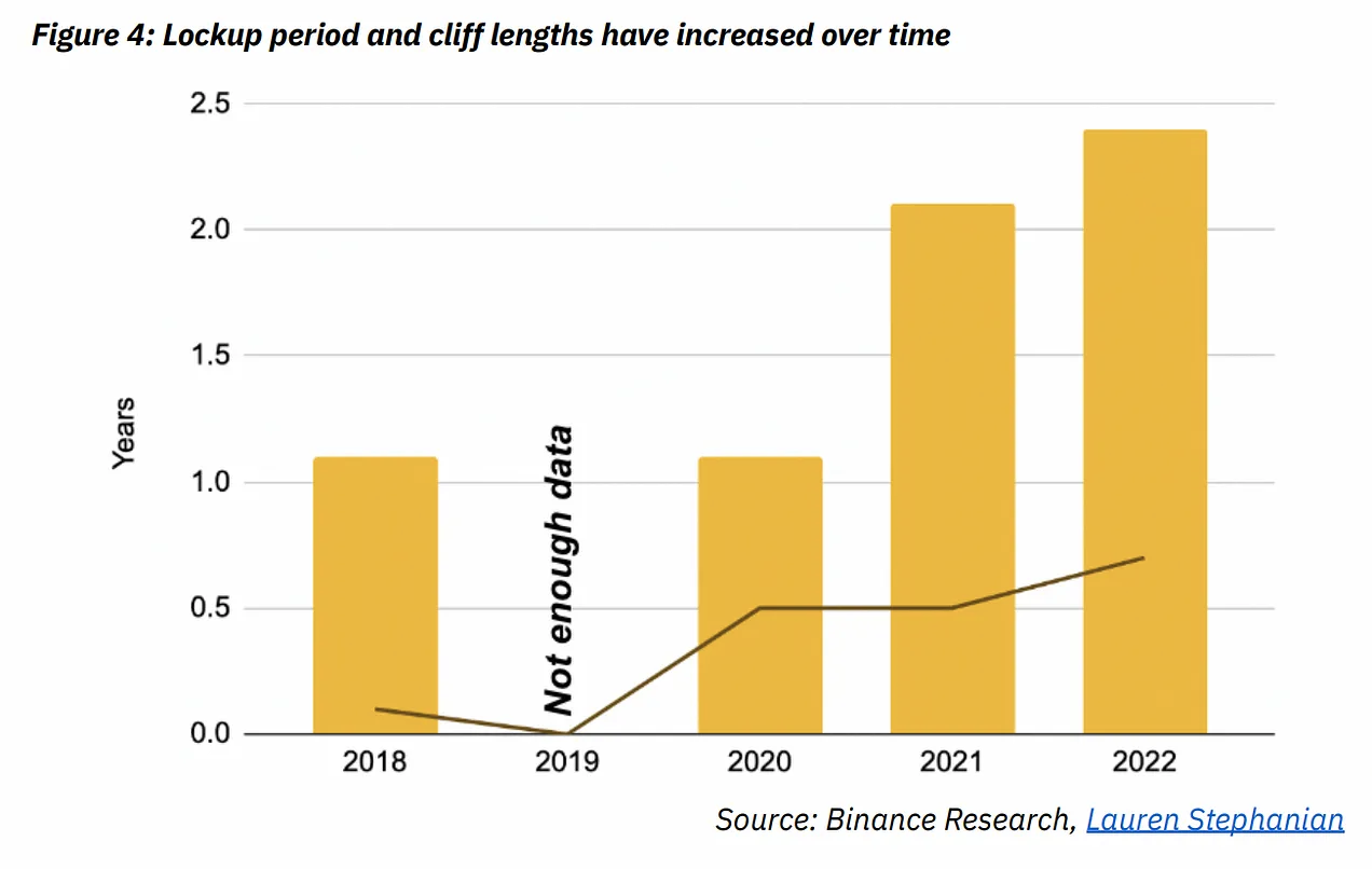 为了应对这种情况,项目已经进行了调整,我们可以通过2018年到2022年锁定期和悬崖长度中观察到这一点。