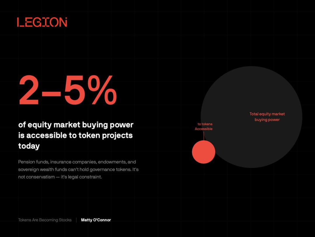 当前代币市场可触达的资金体量,仅为传统股票市场购买力的 2%—5%,这是结构性硬伤。