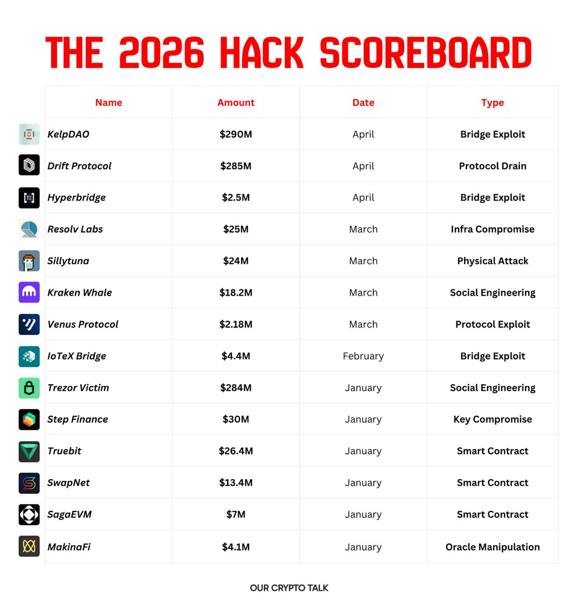 社交平台 X 上流传的一份 2026 年被盗事件榜单,直观反映了当下行业的悲观情绪。