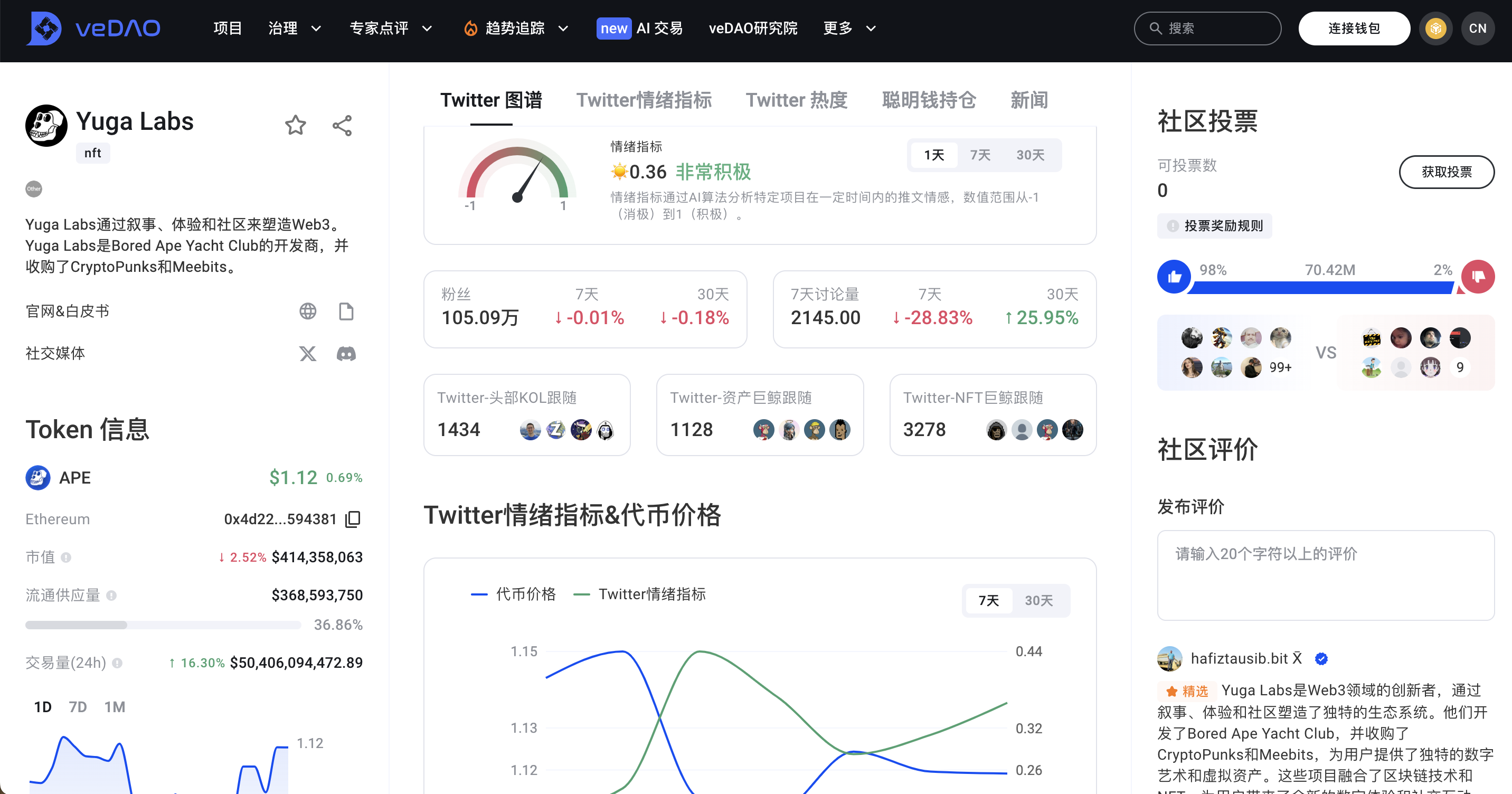 在《如何跟踪加密聪明钱?迈向财富自由的第一步》文章中推荐的几个聪明钱工具,其都是方便用户基于单一聪明钱进行分析和跟踪的工具。而veDAO是把经过精挑细选的两万多个聪明钱钱包地址视为一组钱包,基于AI技术和群体智能理论,从而为用户提供更基本、更准确的项目价值和加密市场判断。