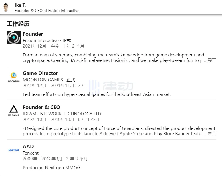 据领英页面信息,Fusionist 团队创建于 2021 年 12 月,创始人兼 CEO Ike T. 出身腾讯游戏团队(2009-2012)游戏开发经验丰富。Fusionist 构建了一个可扩展且可持续发展的科幻世界,并结合复杂游戏设计和通缩 Token 机制。目前游戏已公布三种游戏模式,分别为:Colonize(模拟建设)、Conquer(回合制游戏)以及 Unite(MMORPG)。玩家将可在游戏过程中获得 Token 和其他 NFT 奖励。