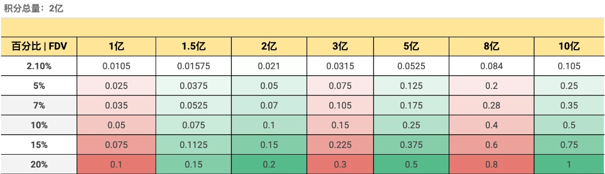 根据用户 Nathan 整理,若积分总量为 2 亿,对于近几周刷交易量赚 GP 积分的用户,Genius 开盘 FDV 最少要高达 8 亿美元才不会「被反撸」。