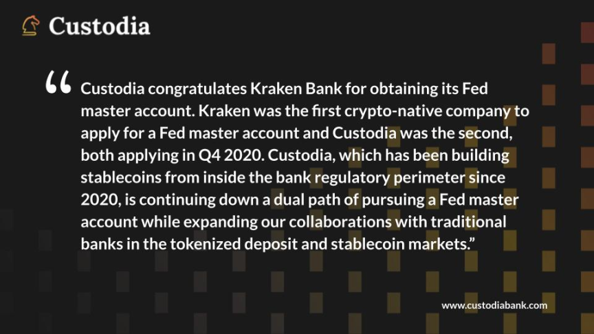 Custodia Bank 从 2020 年 10 月就提交主账户申请
