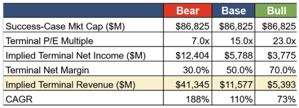 在基准情形下,反向贴现现金流模型所需的 115 亿美元收入与自下而上模型得出的 47 亿美元之间存在约 2.5 倍的差距。