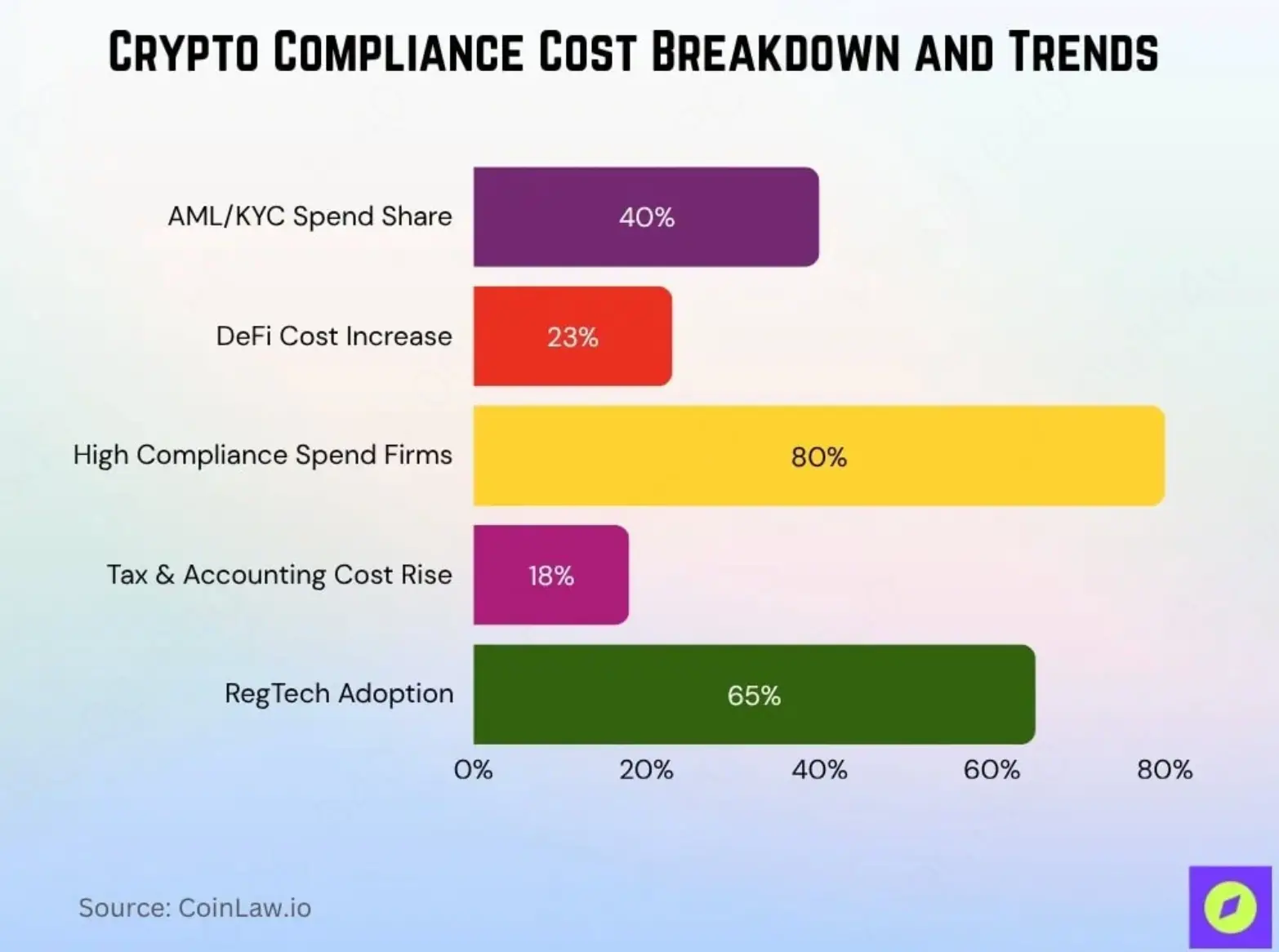 这并非 Gemini 独有的困境,而是整个行业都得面临的成本问题。根据 CoinLaw 统计,中小型加密企业的平均合规成本从 2025 年的 62 万美元增加到 2026 年的每年约 76 万美元,上升 22.5%;反洗钱(AML)与客户身份识别(KYC)流程占据合规预算的 40%,是最大的单项成本,许多企业为了适应合规需求被迫建立专责合规部门。