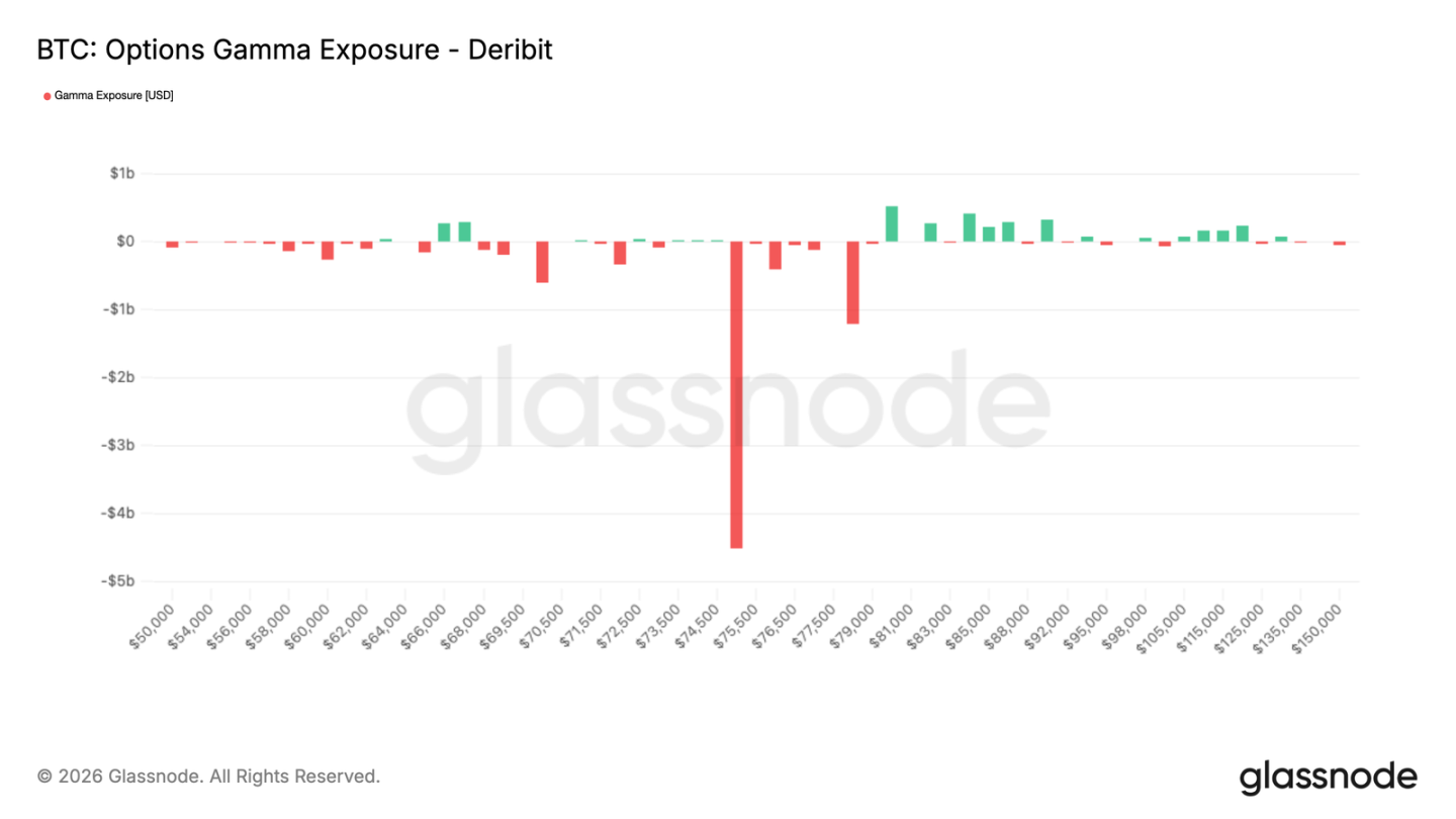 负 Gamma 扎堆在 7.5 万美元