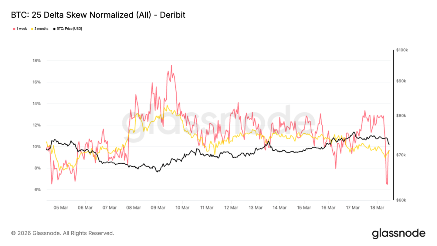 目前的偏斜状态说明,市场正在从恐慌性保护转向更平衡的期权结构,同时也在为可能的战术反弹做准备。