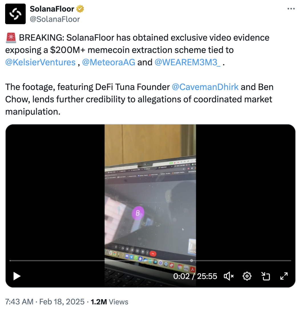 DefiTuna 创始人 Moty 就在此之后爆料称,Meteora 和 Kelsier Ventures 就是这一切的幕后黑手,且涉及的代币远不止 MELANIA 和 LIBRA。Kelsier 通过 Meme 代币 Launchpad M3M3(Meteora 称其是社区推出的平台)操控上线的 Meme 代币价格获利,包括后来的 MELANIA 以及 LIBRA,Kelsier 总计获利高达 2 亿美元之多。