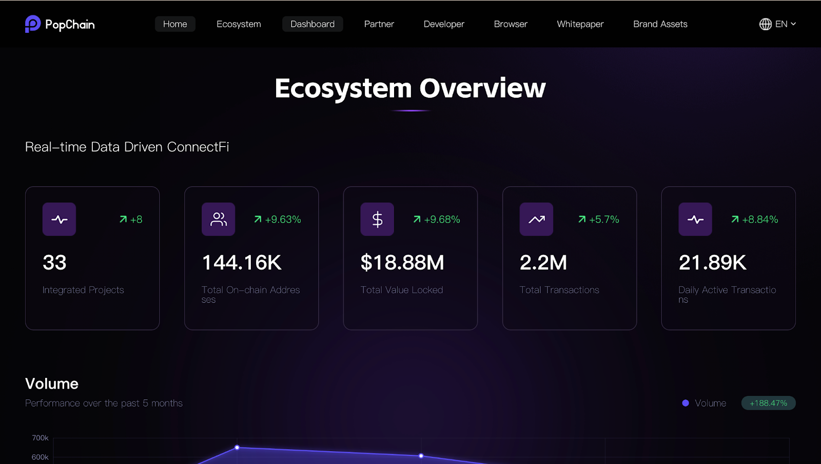 该模块是 PopChain 生态的晴雨表,为投资者和用户提供透明的链上数据快照 :