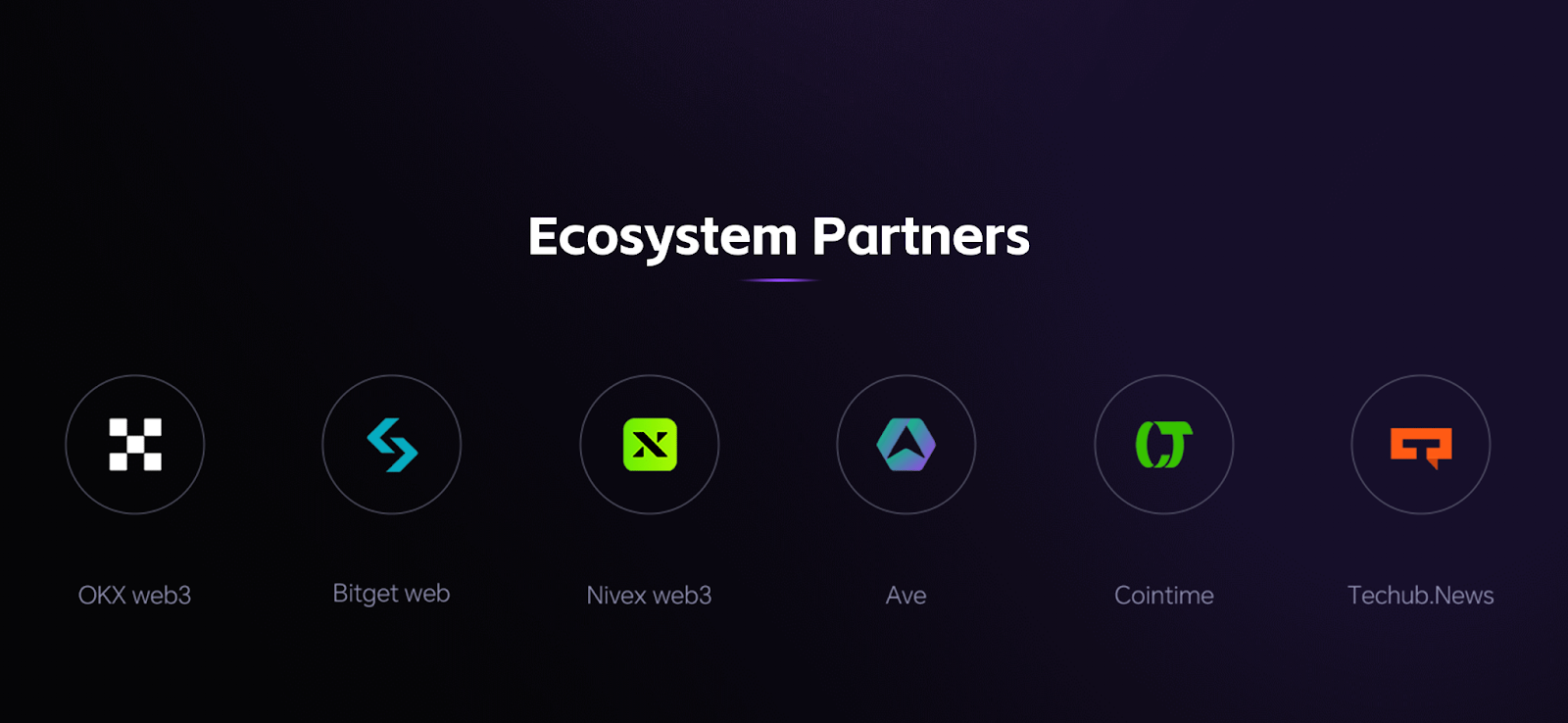 全景展示了Popchain以及POP生态的核心合作伙伴,包括生态核心交易平台NIvex,主流web3钱包平台,官方数据合作平台Ave以及合作媒体机构Cointime和TechubNews
