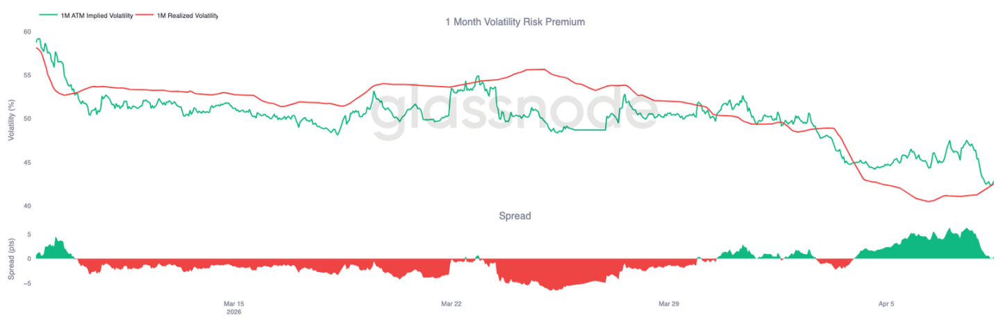 这种环境并非预示着强势,而是指向缺乏参与。市场更多的是被动反应而非主动引领。随着隐含波动率也走低,一个月的波动率风险溢价目前已接近零。这种结构在历史上曾为波动率买方提供过有吸引力的入场点。