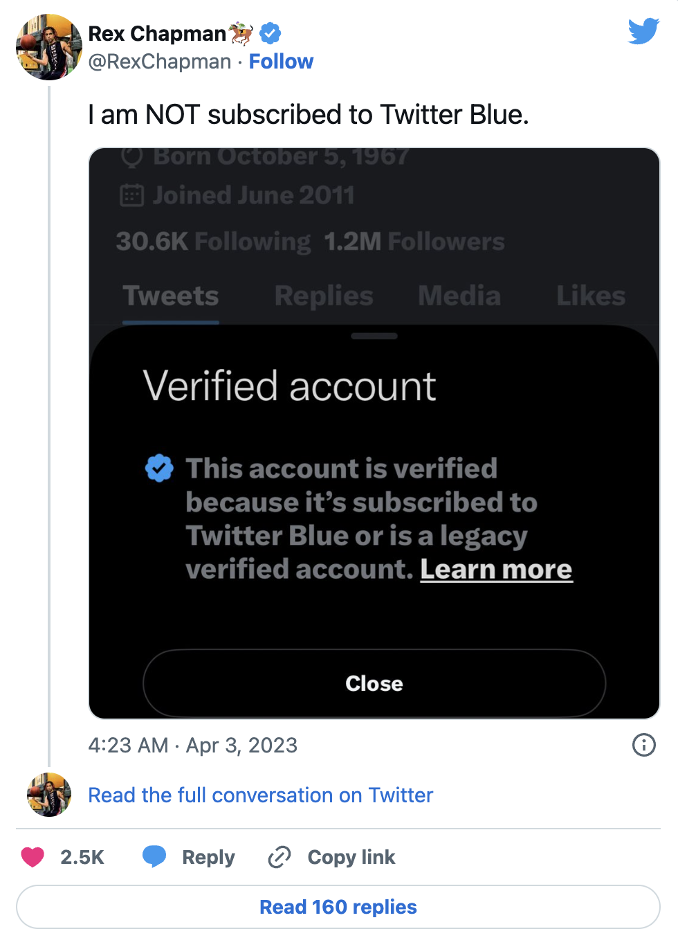 在这次变化之后,一些传统认证的 Twitter 用户想要明确表示他们实际上并没有为 Twitter Blue 付费。
