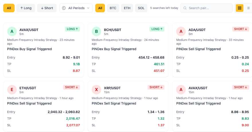 一方面,PINDex 生态中,布局了一个完全基于 AI 策略交易的产品 PINAgent AI。不是一个简单的买卖插件,它是 Web3 的“AlphaGo”。基于 PINAgent AI,用户可以随时随地获取如 BTC、ETH、ADA、SOL 等全球主流加密货币的多空信息和操作建议,以及用户个人的盈亏报告。更重要的是,PINAgent AI 还能多维度给你提供关于某一币种,某一项目的社媒信息指数、热力指数、涨跌幅以及各种信息和研报,让你在获得财富积累的同时,成为自己的“Smart Money”。