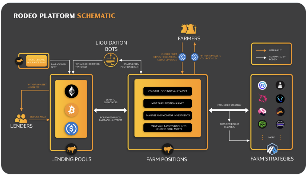 因此,Rodeo 与 DeFi Farming 相似,但它还提供了杠杆交易服务,让用户可以使用多倍的资金进行投资,并能够获得更高的收益。