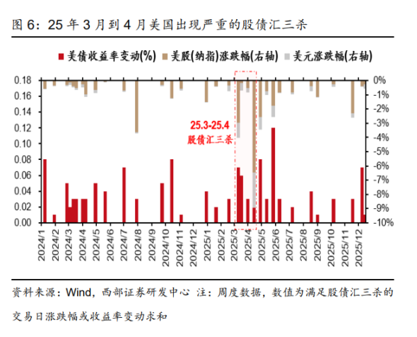 情景二: 如果资金恐慌真的诱发了全球流动性冲击,投资者需要密切跟踪一个关键信号——美国市场是否连续出现 2-3 次「股债汇三杀」(即股市、债市、汇市同步下跌)。报告指出,类似今年 4 月初的情况一旦重演,则表明市场出现流动性冲击的概率明显增强。