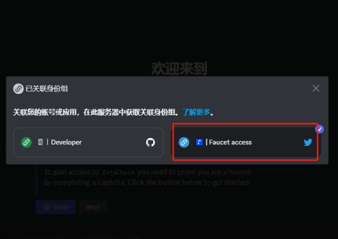 领取 ZetaChain NFT 通行证挺讲究的,需要通过 discord 绑定推特确认,然后在测试频道输入地址确认,领取完测试代币才能领取 NFT