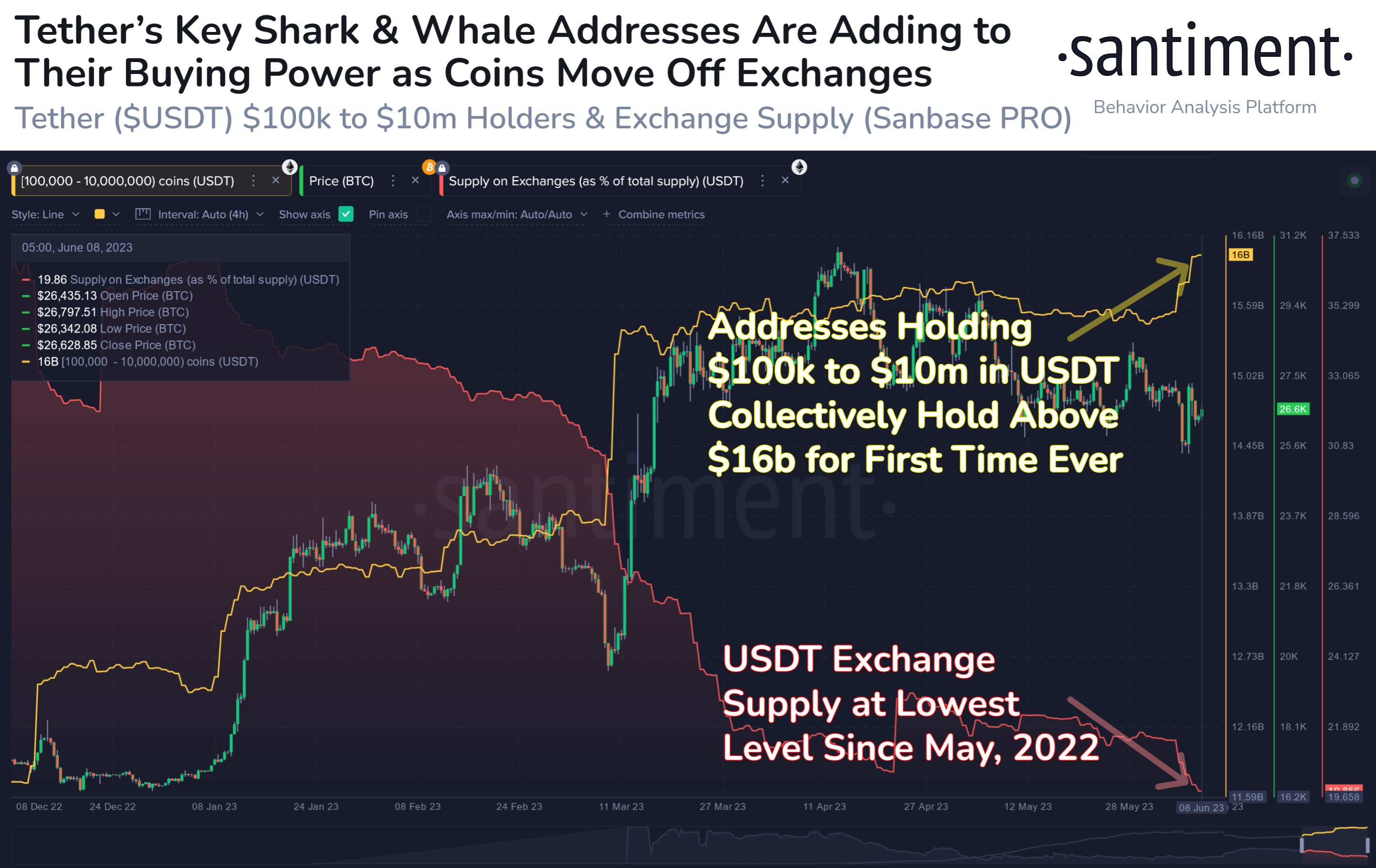 持有大量 USDT 的钱包并未进行出售,反而从中心化交易所(CEX)转向自我托管。