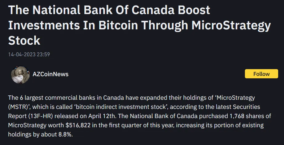 我们还可以看到,加拿大第六大银行在 2023 年购买了价值超过 50 万美元的 MicroStrategy 股票。我们应该探讨的重要问题是: