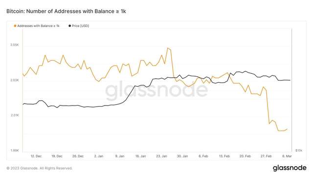另一方面,上周持有超过 1000 个比特币的比特币地址总数也有所下降。近 24 个这样的比特币地址在上周重新分配了他们的比特币并从网络中删除。