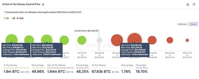 比特币跌破了23,050美元和23,730美元之间的关键支撑区域,163万个地址买入了超过91万个BTC。如果不能重新获得这一区域的支持,可能会引发抛售,将#BTC推到20,700美元,甚至19,300美元。