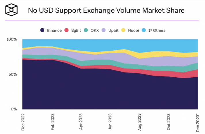此外,可能是由于币安已经为和解条件进行了长期的谈判和准备,也可能是经历了 2022 年的洗礼后整个 Web3 社区变得更具韧性,我们几乎没有看到本次事件有任何大的负面影响。从某种程度上来说,币安已经获得了市场的普遍认可,第三方的打压已经无法轻易摧毁市场对其的信任和信心。