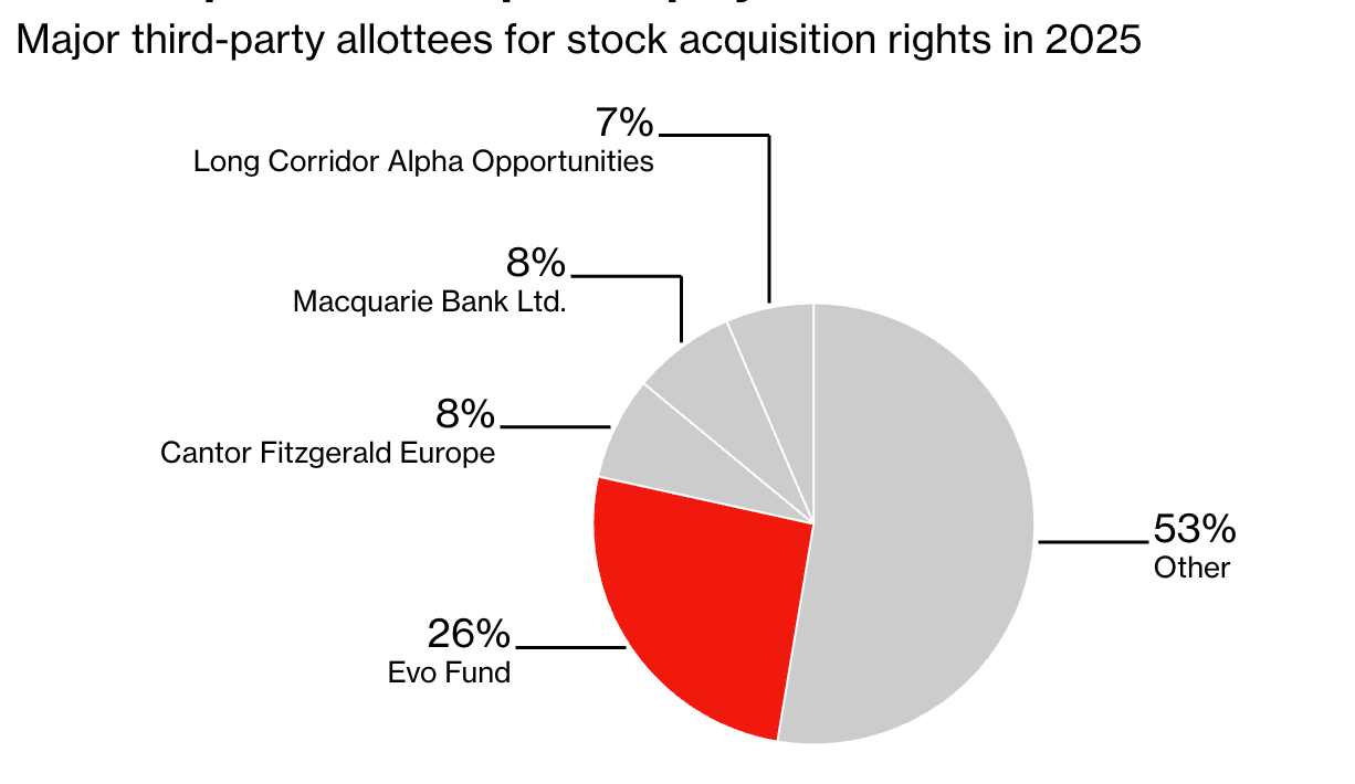 随着 Metaplanet 持续募资囤币,Evo 的行权交易不断稀释原有股东股权,其中大量散户是通过日本免税理财账户持股。仅 6 月 24 日那一次行权,Metaplanet 总股本就扩张约 9%。