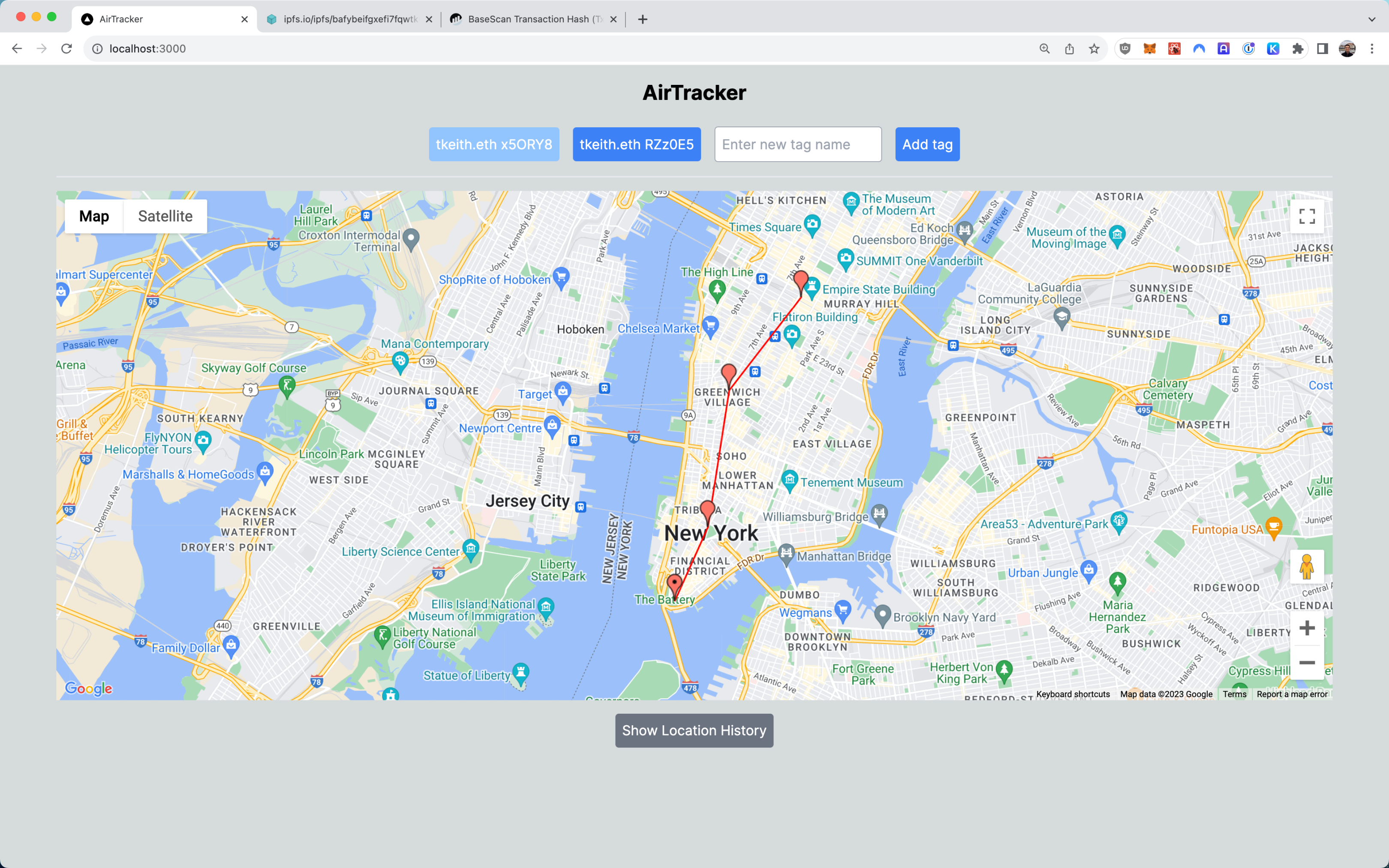 AirTracker 使用 AirTags 和区块链来存储和传递消息,以进行去中心化的实物物理资产跟踪。它先通过苹果设备抓取每个 AirTag 资产的位置数据,并将其存储在链上和 IPFS 上,位置更新也通过 XMTP 发送,并使用 AirStack 进行 ENS 查找。