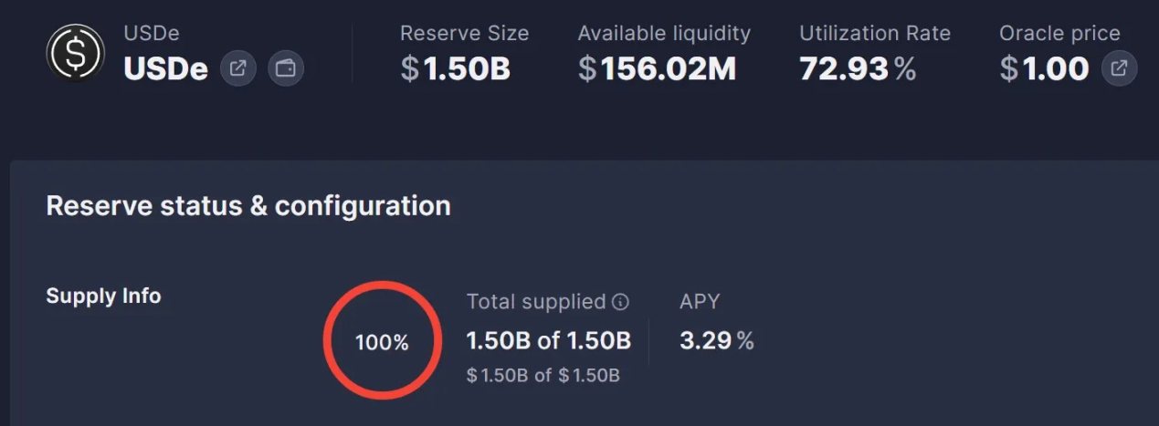 否则,你的全部本金可能在一夜之间蒸发,尤其是当你把收益重新投入这个循环时。撰写本文时,AAVE 在以太坊网络上的 15 亿美元 USDe 供应已达上限,人们正把这种杠杆操作推向极致。