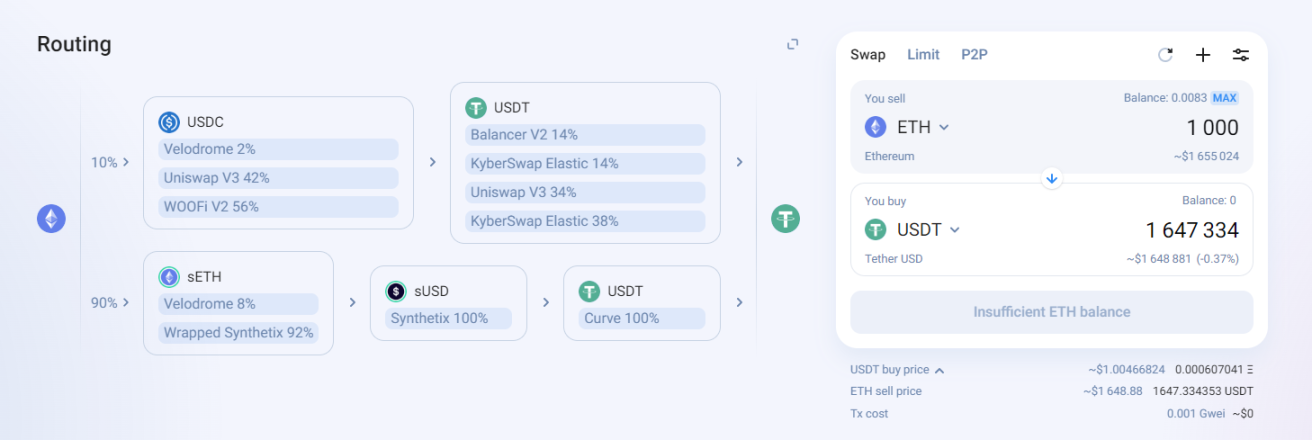 2022 年 8 月,随着 Tiaki 版本更新,原子交换功能正式被集成至 1inch,开始为链上交易提供零滑点的交易路径(主要集中在大宗交易)。