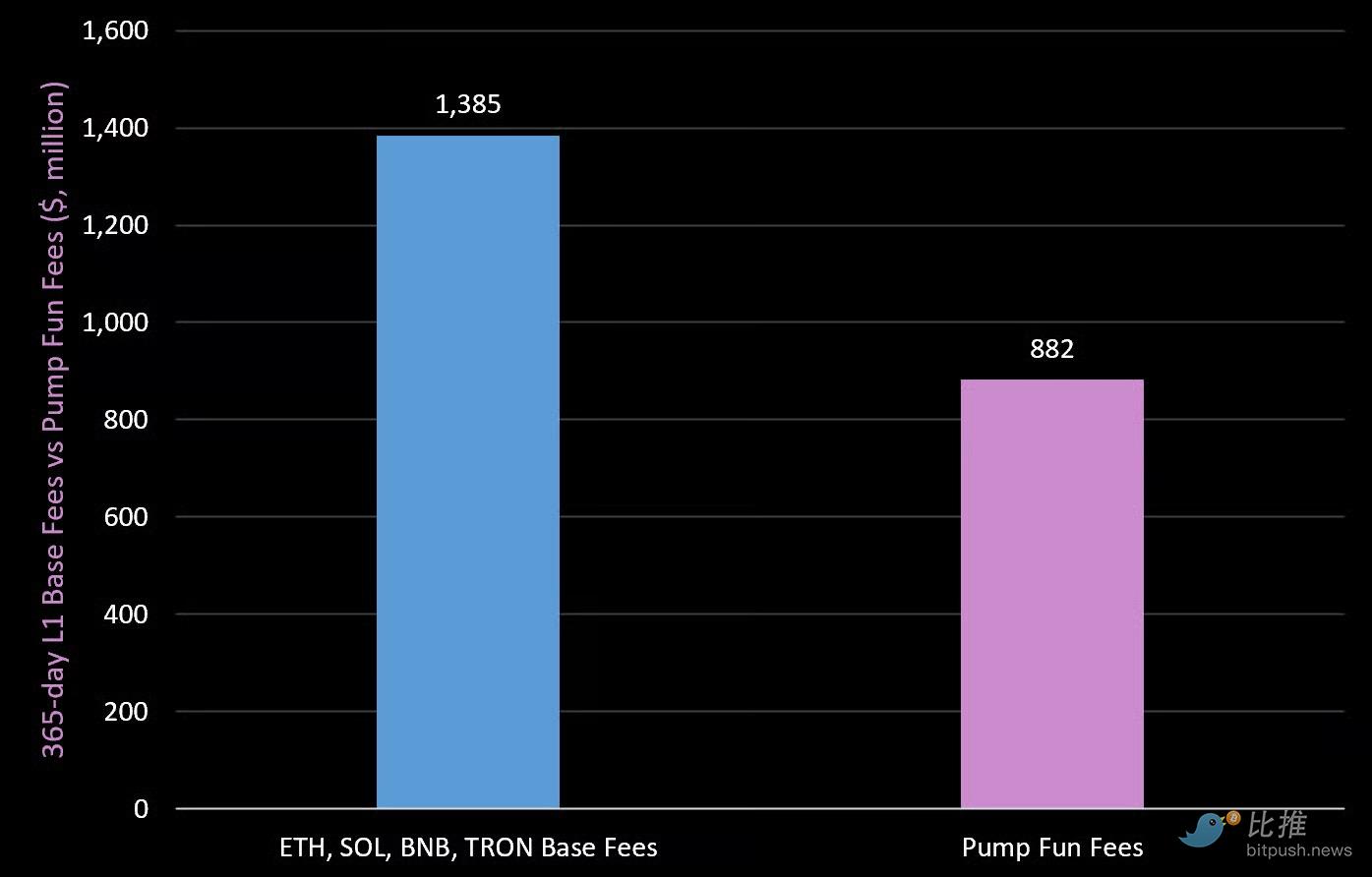 365 天 L1 Base 费用 vs Pump Fun 费用
