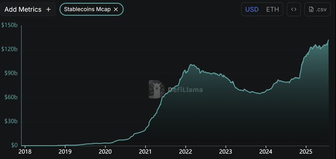 目前,与美元挂钩的代币发行商已达数十家,其中包括PayPal和摩根大通等传统金融巨头。同时,美国近期通过的《GENIUS法案》正在为机构采用扫清道路,该领域作为日常支付的替代媒介,也正受到主流观察者的关注。