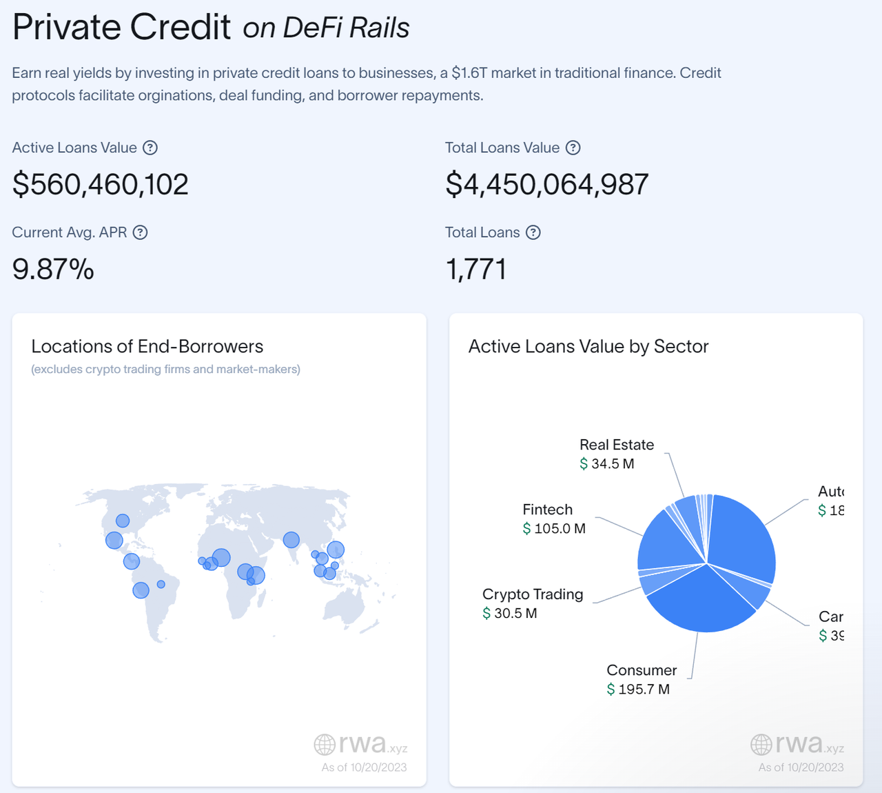 根据TAC提供的代币化资产看板可以清晰看到,当前defi代币化资产类型中,私人信贷类TVL达44亿美元,APR高达9.87%;