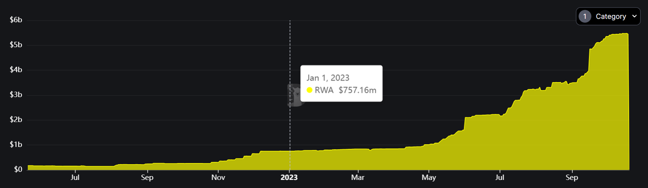 事实上,数据也证明了RWA的火爆。今年,RWA成为了加密货币领域增长最快的赛道,其总锁定价值(TVL)增长率达到了惊人的653%。到10月为止,RWA已经成为Defi中的第六大品类,其总TVL高达570亿美元。此外,RWA的持币者数量也在稳步上升。目前,RWA的代币持有者已超过4.5万,这一数字与去年相比,几乎翻了一番。
