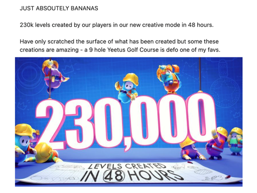 有机可发现的创意回合可以建立参与度的正循环,并为《糖豆人》创造一类新的影响者。