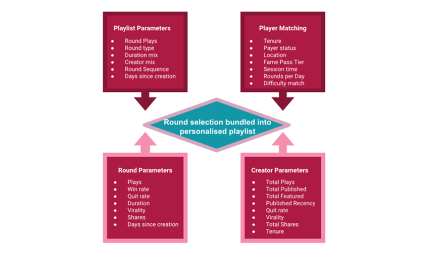 尽管目前是由Mediatonic精选的高质量创意回合显示在展示选择器中,但算法的出现意味着每个决策参数都需要进行大量测试,以确定确切的标准。即使发布说明中表示Mediatonic将优化游戏时间分钟,但最长的回合可能会比有趣更令人沮丧。这种可发现性优化是UGC的基本要求,只是朝着基于玩家行为的真正个性化迈出的第一步。