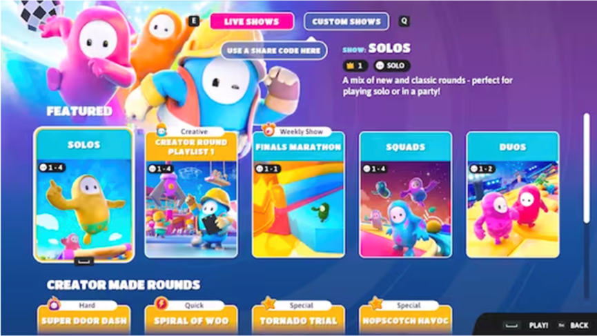 Mediatonic表示,在解决了初始工具和内容发布中的问题后,创意回合将出现在“展示选择器”中,供所有玩家发现。展示选择器的回合可能会根据参与度因素(如游玩频率和在该回合中的游戏时间)进行算法优化。