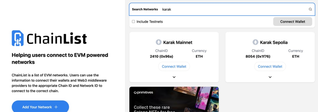 ChainListChainList is a list of RPCs for EVM(Ethereum Virtual Machine) networks. Use the information to connect your wallets and Web3 mid…chainlist.org