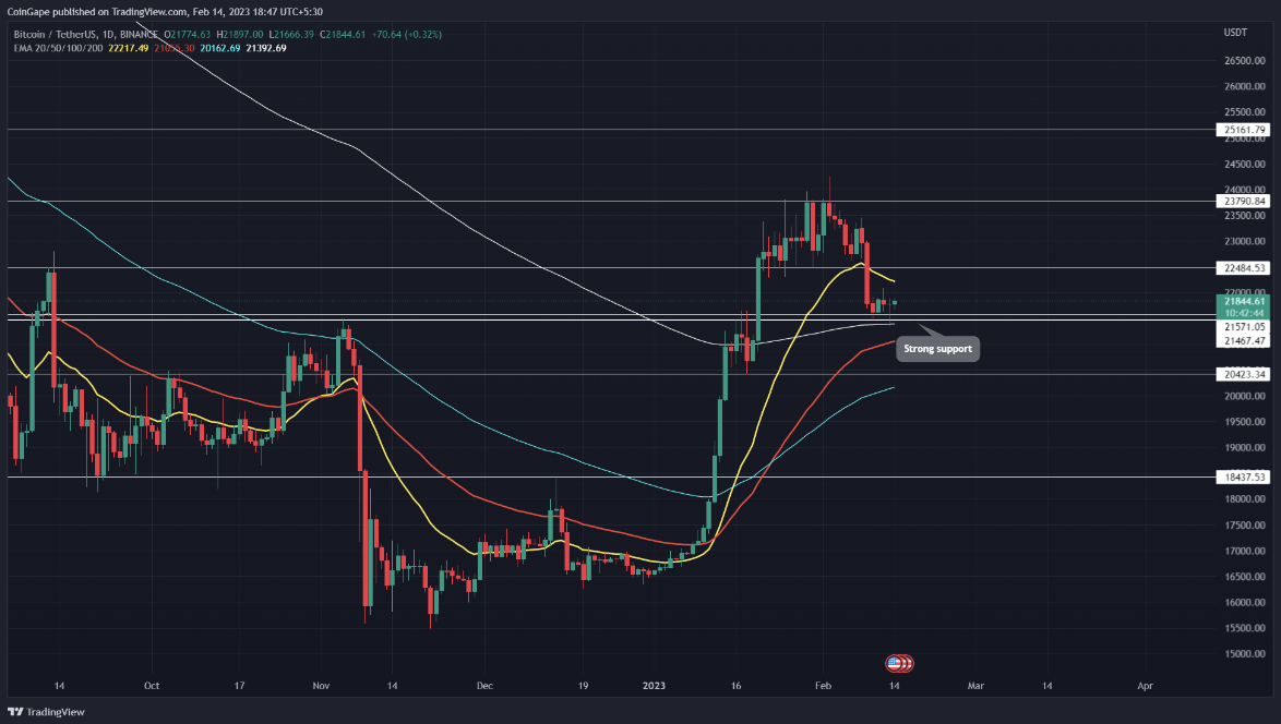 比特币价格自2月2日以来的下跌引发了加密货币市场的回调。因此,BTC价格从23800美元的阻力位暴跌了9.5%,达到了21815美元的局部支撑位。然而,在过去的五天里,价格一直在横向移动,表明市场参与者的不确定性。这种盘整是新的复苏的开始,还是只是进一步下行前的一个突破?