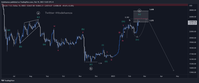 根据匿名的加密货币专家Hamza最近发布的分析,比特币的价格正处于重大突破的边缘,有可能创下本月新低。此后,比特币价格图表的5-wave sequence显示成功完成的迹象。他的分析还支持比特币可能突破 2 万美元大关并继续进一步下跌的假设。